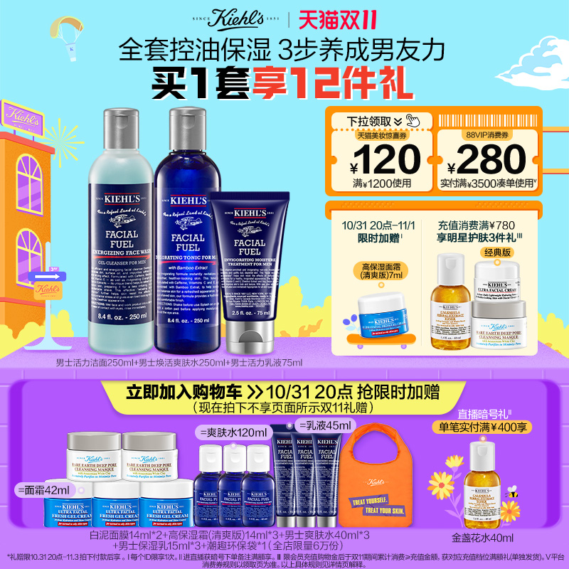 【立即加购】kiehls科颜氏男士水乳液套装洗面奶爽肤水礼物
