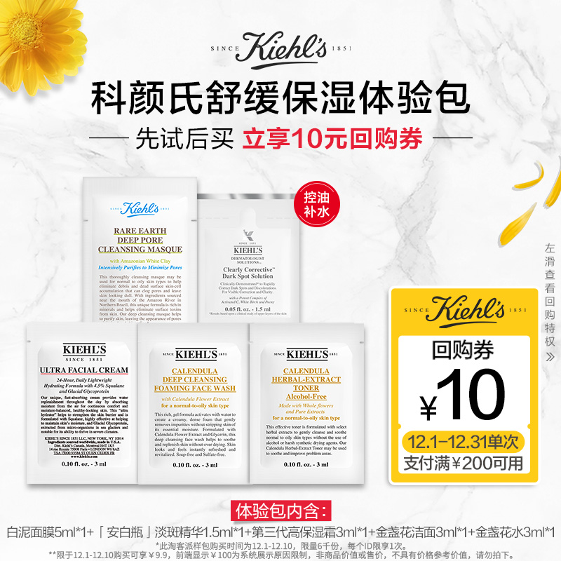 科颜氏白泥面膜安白瓶金盏花爽肤水高保湿清爽霜享200减10元券