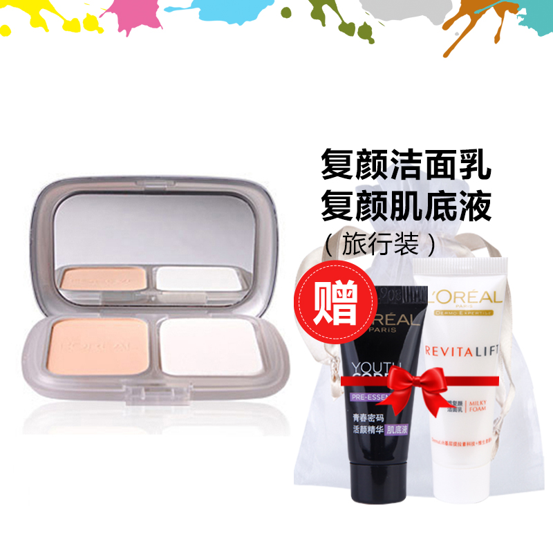 特价包邮 欧莱雅绝配无瑕细腻贴合两用粉饼 遮瑕 送粉扑 正品