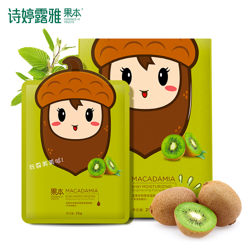 诗婷露雅 坚果奇异果保湿面贴膜补水修护提亮肤色淡化干纹面膜5片
