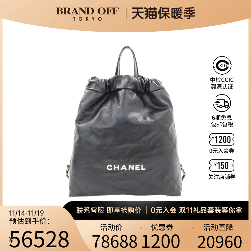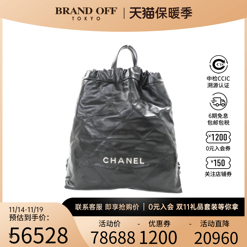 中古CHANEL香奈儿女包A级95新chanel 22 line黑色双肩包BRANDOFF