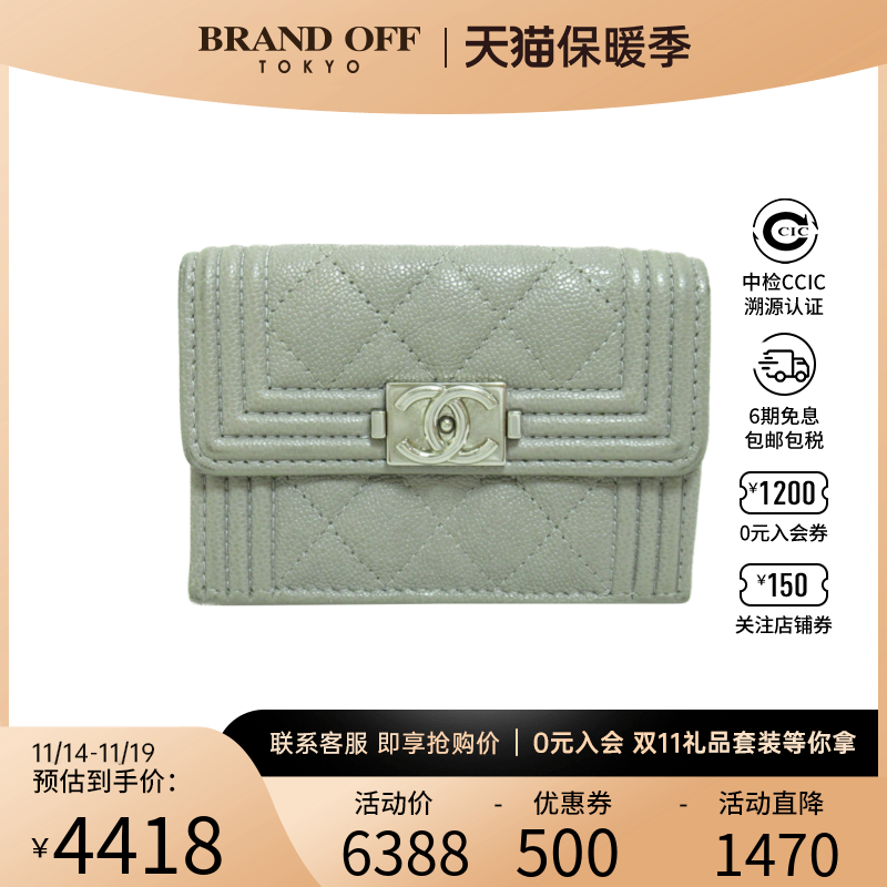 中古CHANEL香奈儿9新Boy Chanel wallet钱包短款钱包菱格鱼子酱皮