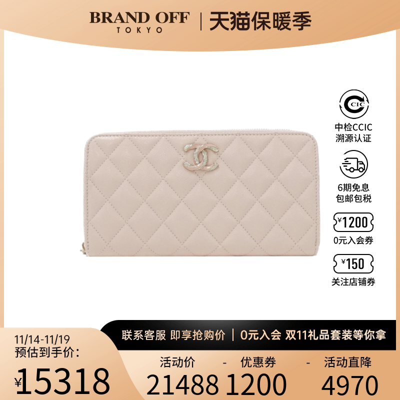 中古CHANEL香奈儿A级95新long wallets钱包长款钱包鱼子酱皮