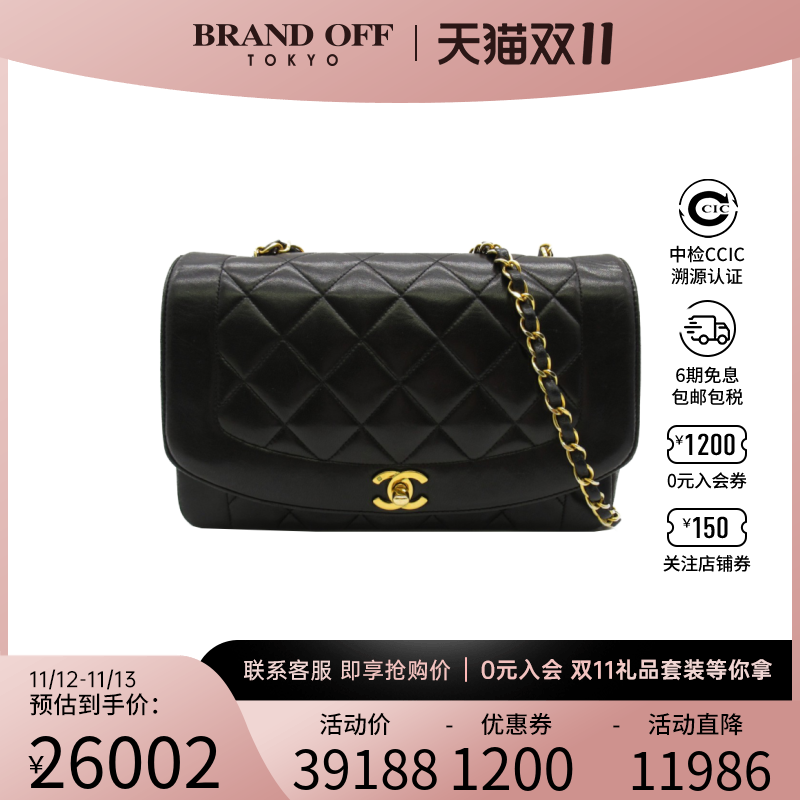 中古CHANEL香奈儿女包B级9新Diana 戴妃包菱格黑色链条斜挎包包
