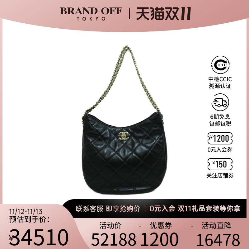 中古CHANEL香奈儿女包A级95新Shoulder bag黑色链条菱格单肩包包