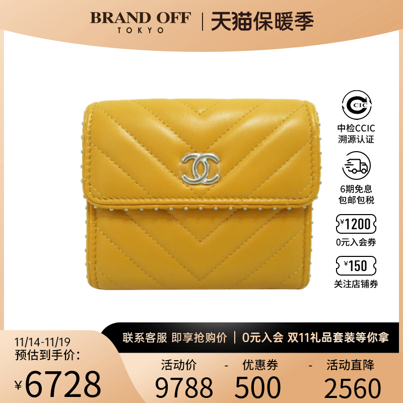 中古CHANEL香奈儿A级95新trifold wallet钱包短款钱包BRANDOFF