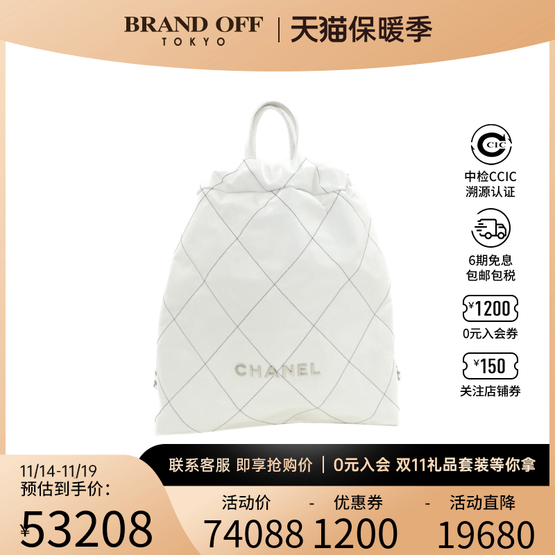 中古CHANEL香奈儿女包A级95新chanel 22 line白色双肩包BRANDOFF