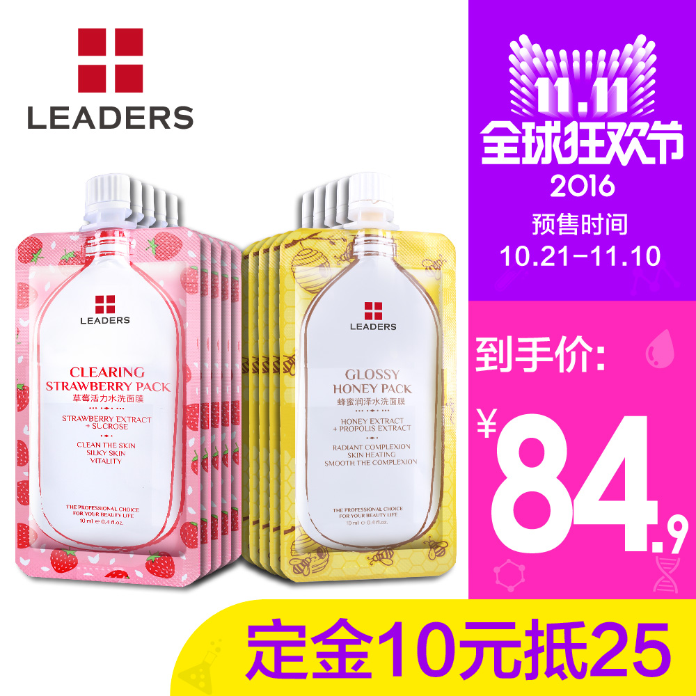 LEADERS/丽得姿草莓蜂蜜水洗面膜套装20片 去除角质 柔嫩肌肤