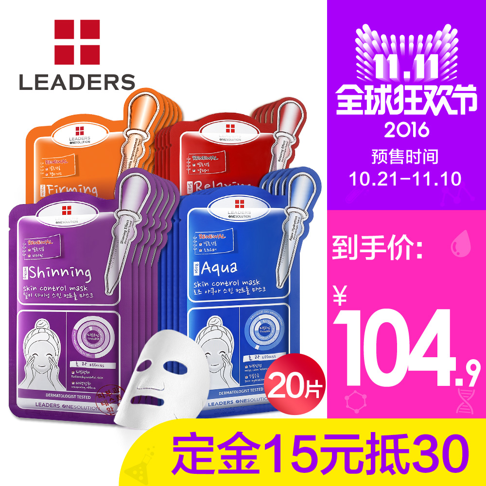 颜色分类:补水面膜 亮肤面膜 抗痘面膜 紧致面膜 功效:补水 保湿 抗痘 控油 提拉紧致 提亮肤色 规格类型:正常规格 品牌:LEADERS/丽得姿 面部护理套装:领先润美单片装任选组合 产地:中国 保质期:3年 查看全文