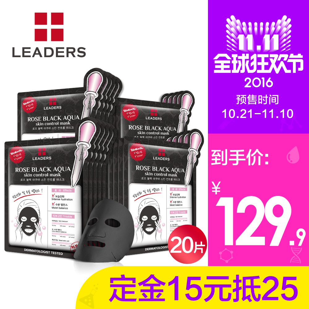LEADERS/丽得姿玫瑰润颜黑面膜套装20片 补水保湿清洁亮肤面膜贴