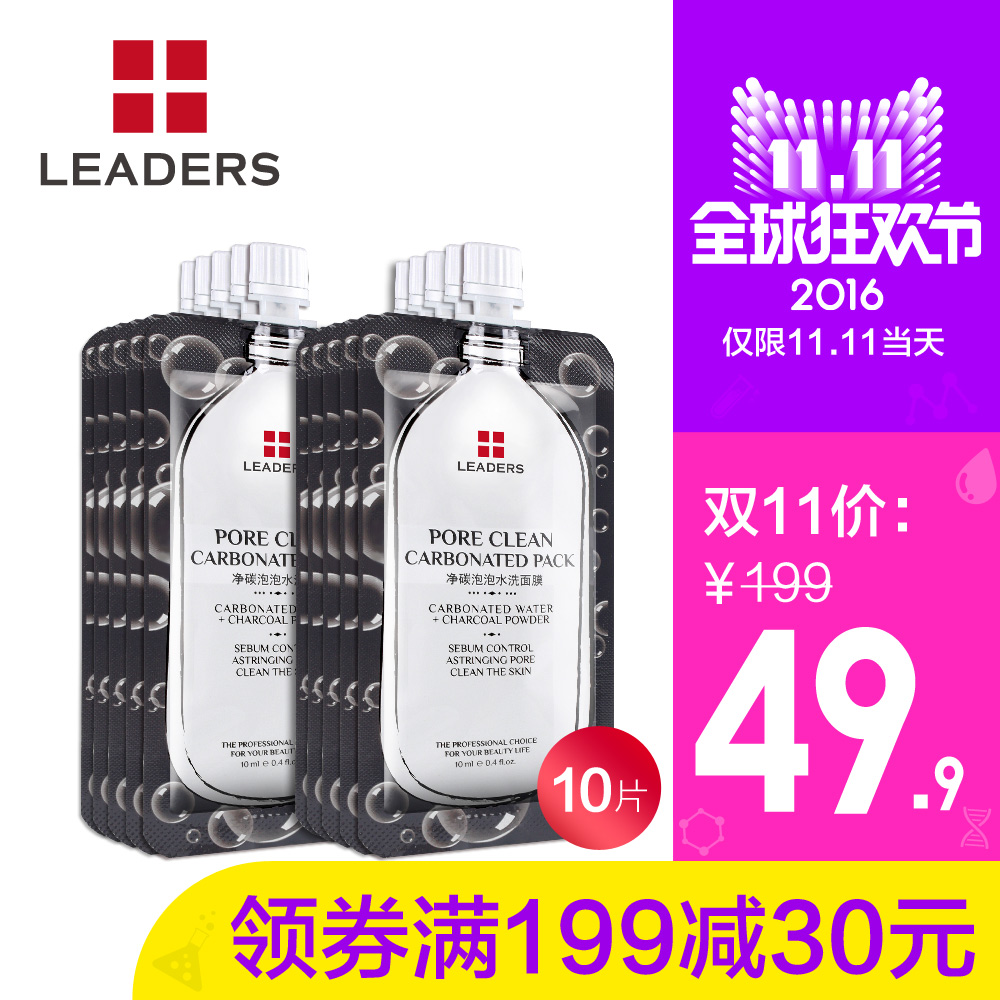 的热门产品LEADERS/丽得姿净碳泡泡水洗面膜10片 清洁毛孔清爽控油提亮正品