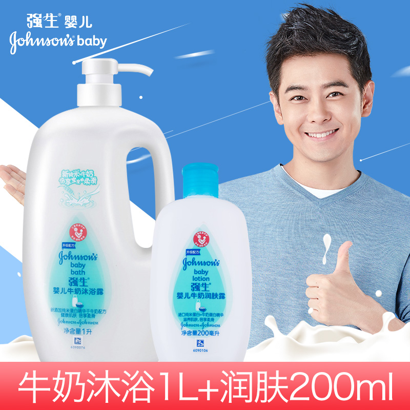 强生婴儿牛奶沐浴露1L润肤露200ml新生儿童宝宝洗护用品温和滋润