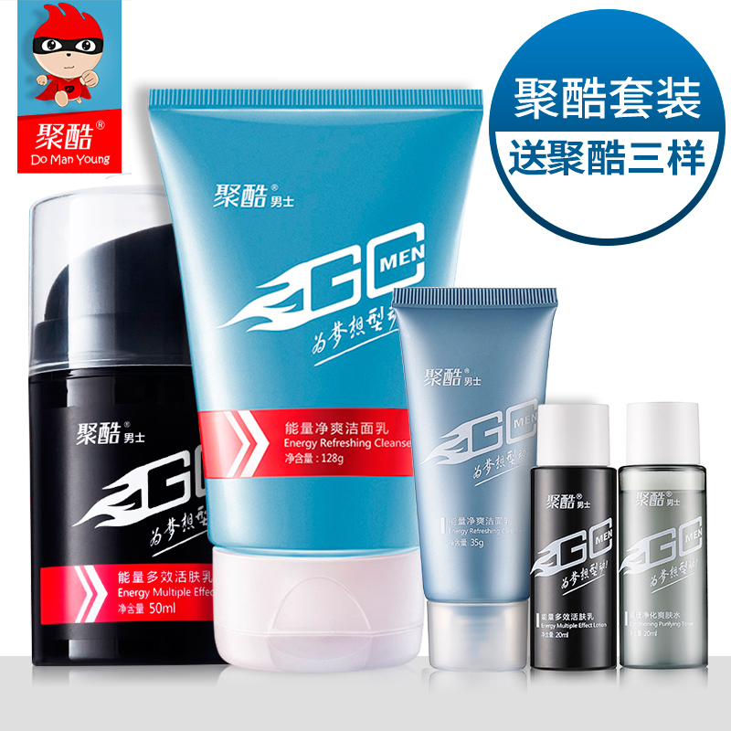 聚酷男士护肤化妆品套装控油去黑头粉刺洗面奶亮肤补水爽肤水乳液