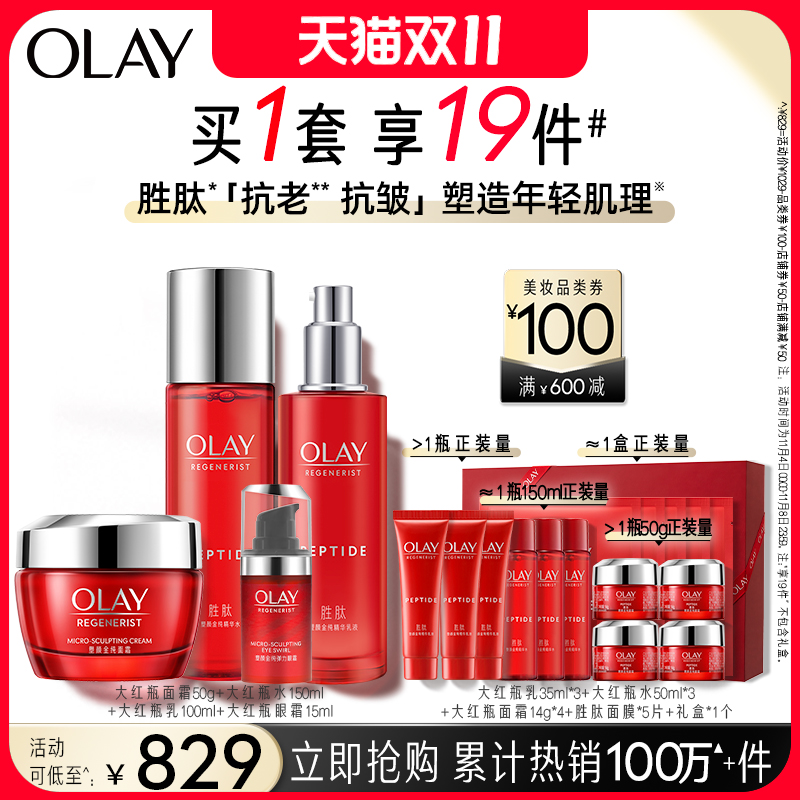 【双11抢购】OLAY玉兰油大红瓶水乳套装化妆护肤品抗皱保湿胜肽