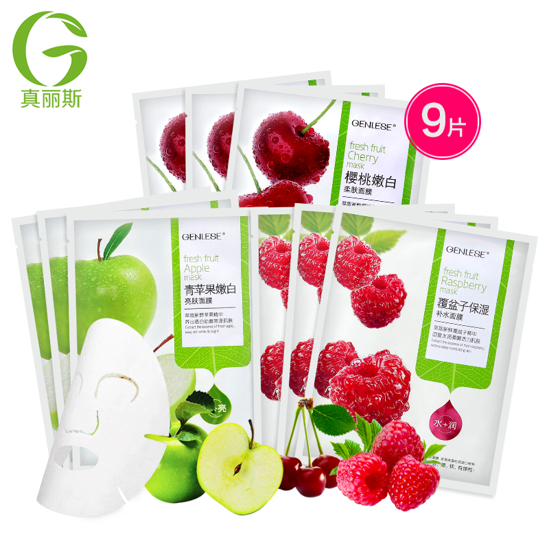 【天猫超市】真丽斯9片蚕丝面膜3种水果味亮肤补水美白晒后修复