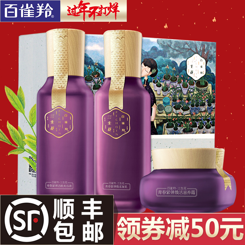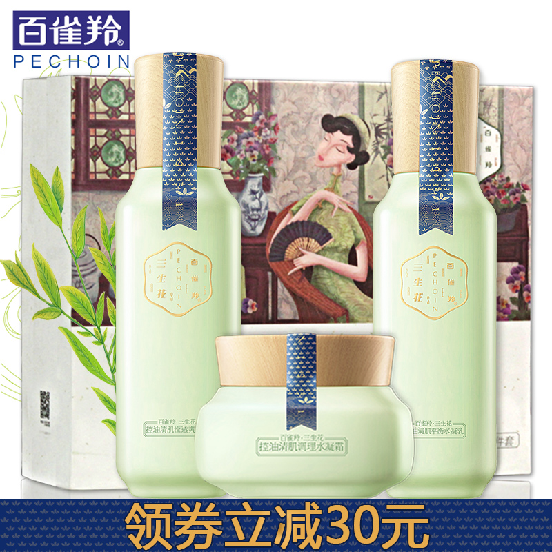 百雀羚套装三生花护肤品补水保湿滋润控油清肌官方旗舰店三件套女