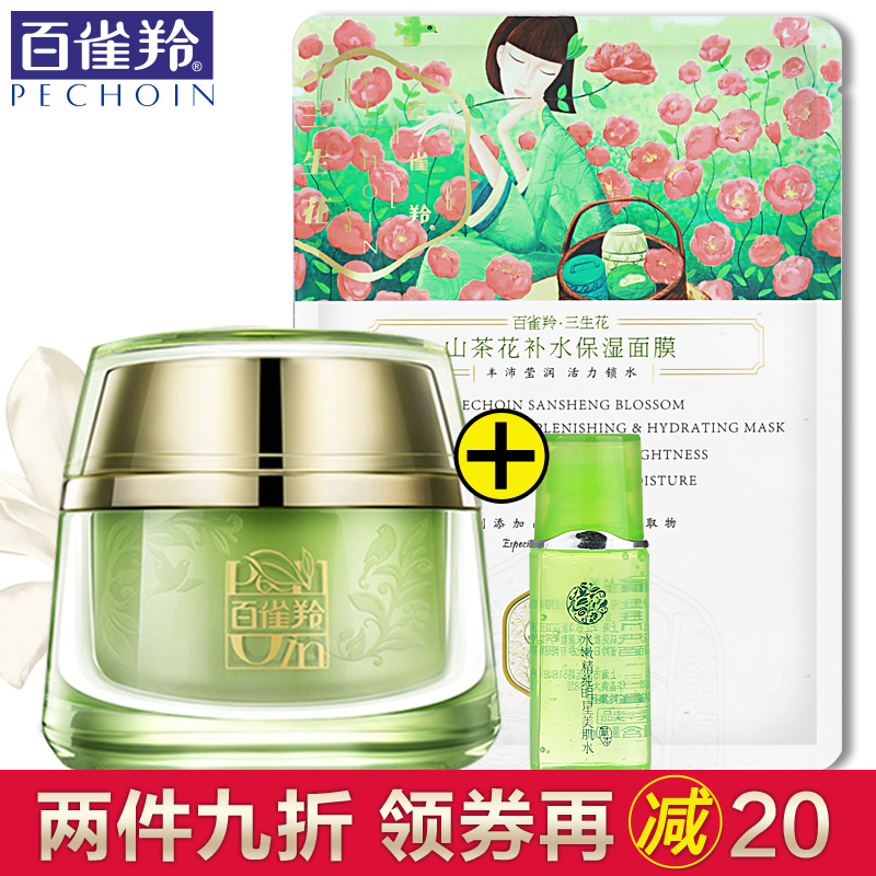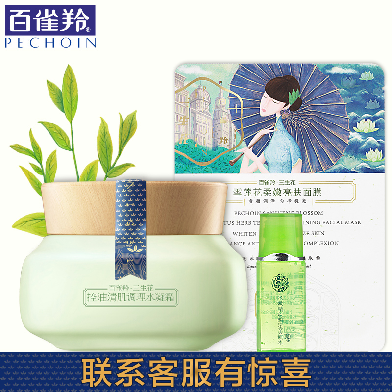 的热门产品百雀羚水润滋养面霜女补水保湿白皙霜三生花控油清肌调理水凝霜女