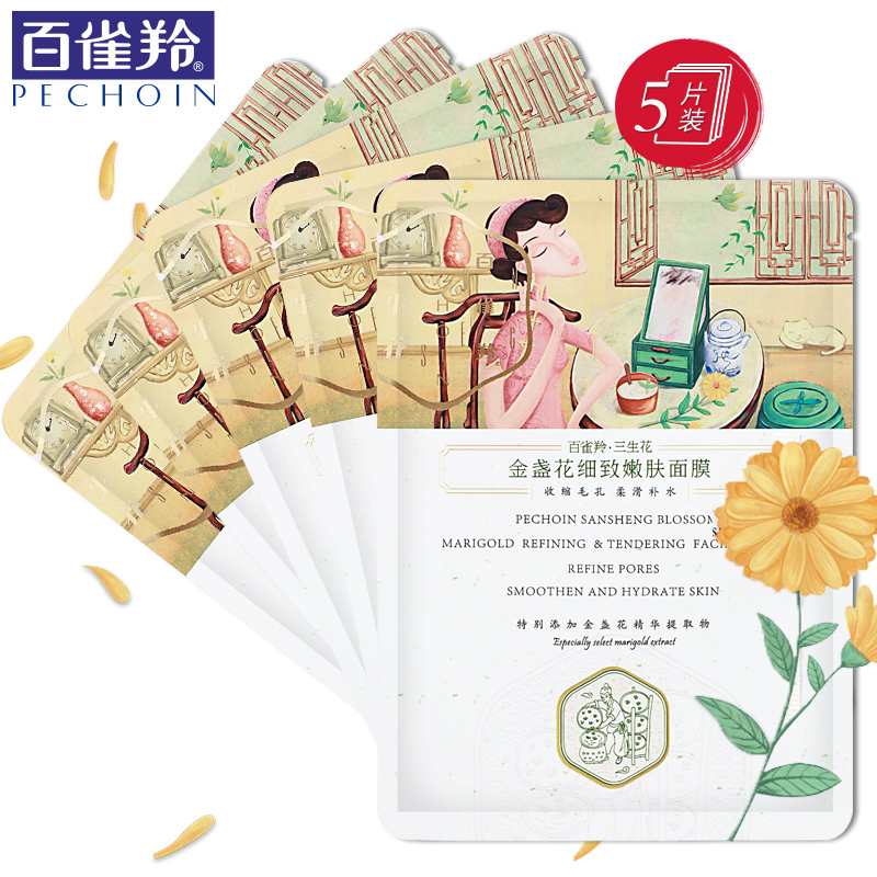 百雀羚面膜贴百雀羚三生花面膜贴 金盏花补水保湿面膜22g五片锁水