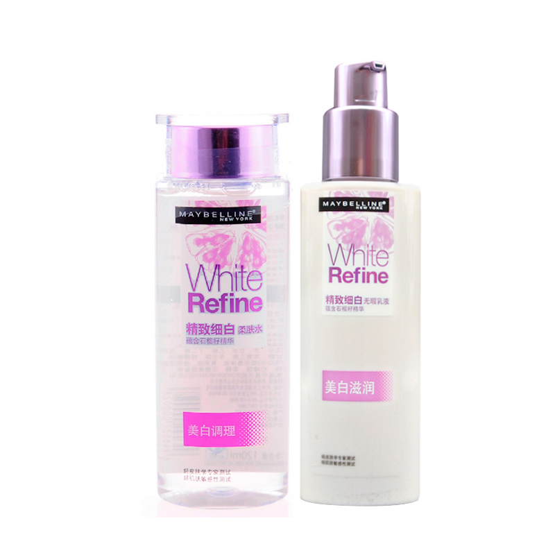 包邮美宝莲女士护肤套精致细白柔肤水+精致细白无暇乳液保湿补水