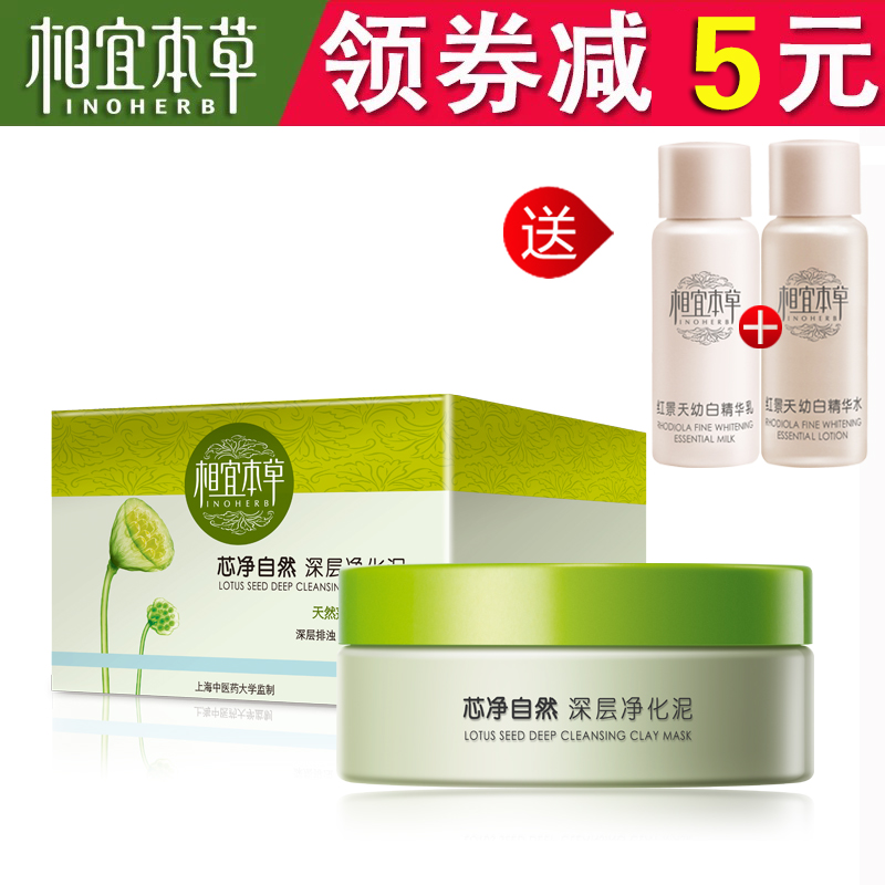 相宜本草芯净自然深层净化泥160g 收缩毛孔控油补水保湿面膜正品
