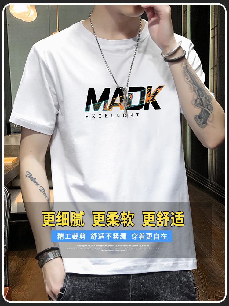 纯棉短袖t恤男装圆领潮流夏季新疆长绒棉打底衫全棉男生半袖