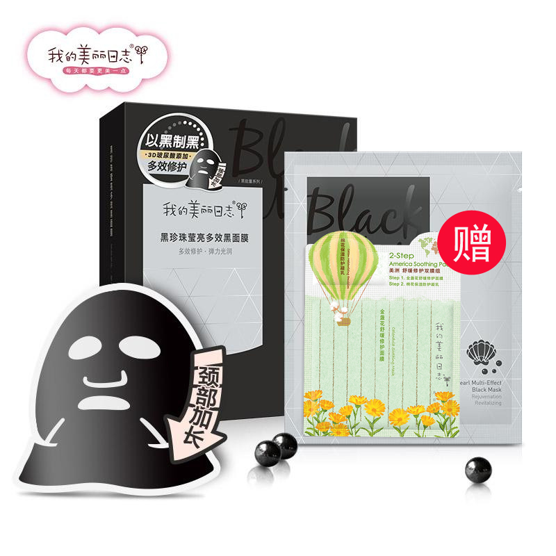 我的美丽日志/日记黑珍珠莹亮多效黑面膜5片装 白皙春季补水