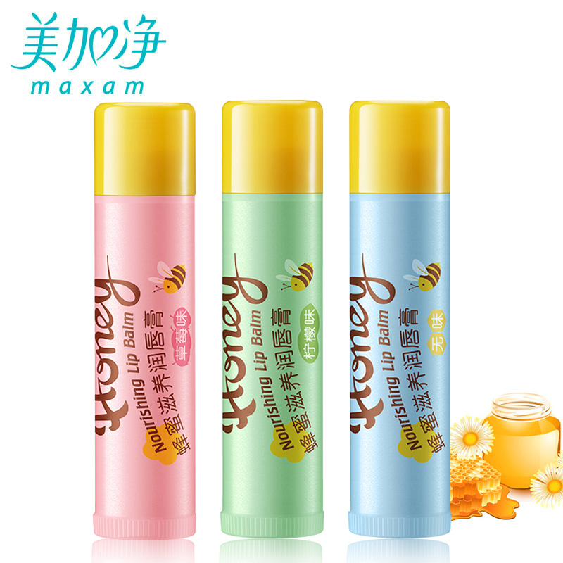 maxam/美加净蜂蜜滋养润唇膏柠檬/草莓/无味三件套装补水保湿滋润