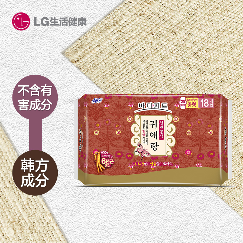 韩国LG直营正品 贵爱娘天然红参无荧光剂卫生巾 日用中25cm*18P