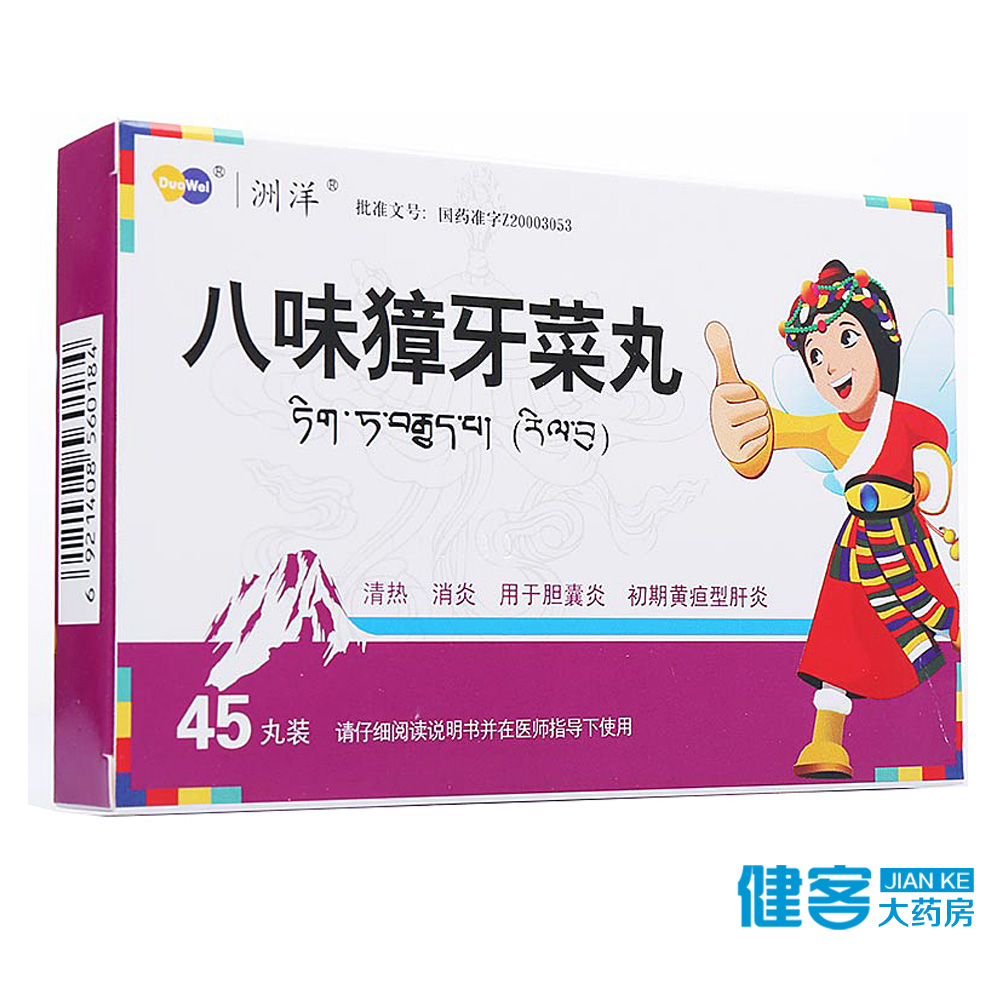 适用人群:不限 产品剂型:丸剂 用法:口服 药品类别:中药 药品分类:处方药 有效期:48个月 疾病:胆囊炎 生产企业:宁夏多维药业有限公司 症状:黄疸 品牌:洲洋 使用剂量:一次4~5丸,一次2~3次 批准文号:国药准字Z20003053 药品名称:八味獐牙菜丸 药品规格:45丸/盒 药品通用名:八味獐牙菜丸 查看全文