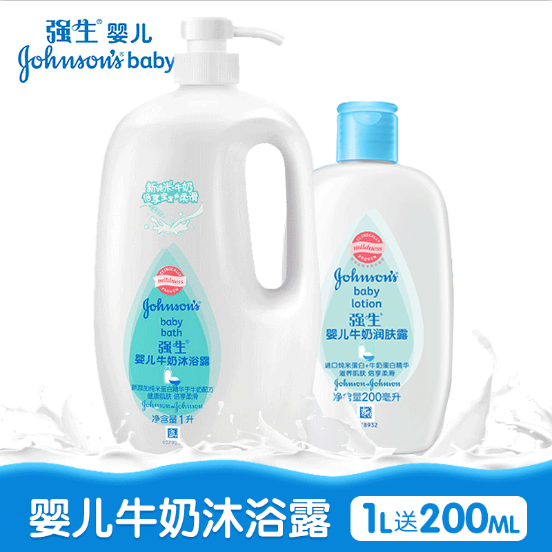 强生婴儿牛奶沐浴露1L+润肤露200ml 儿童宝宝洗护用品温和无刺激