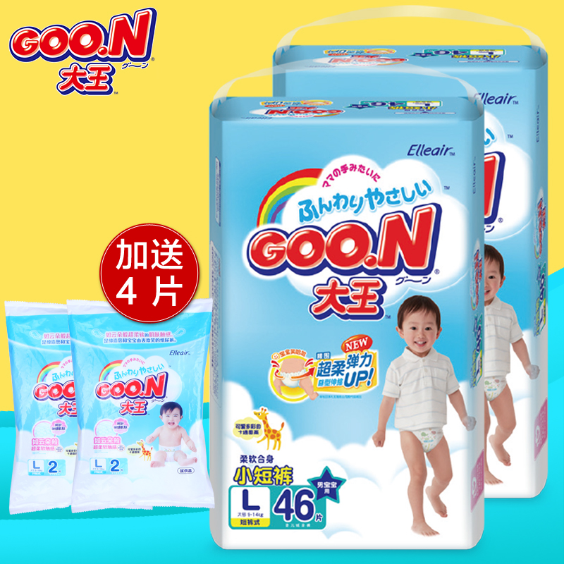 大王短裤式纸尿裤L46片*2包 男宝宝大号拉拉裤 超柔软透气尿不湿