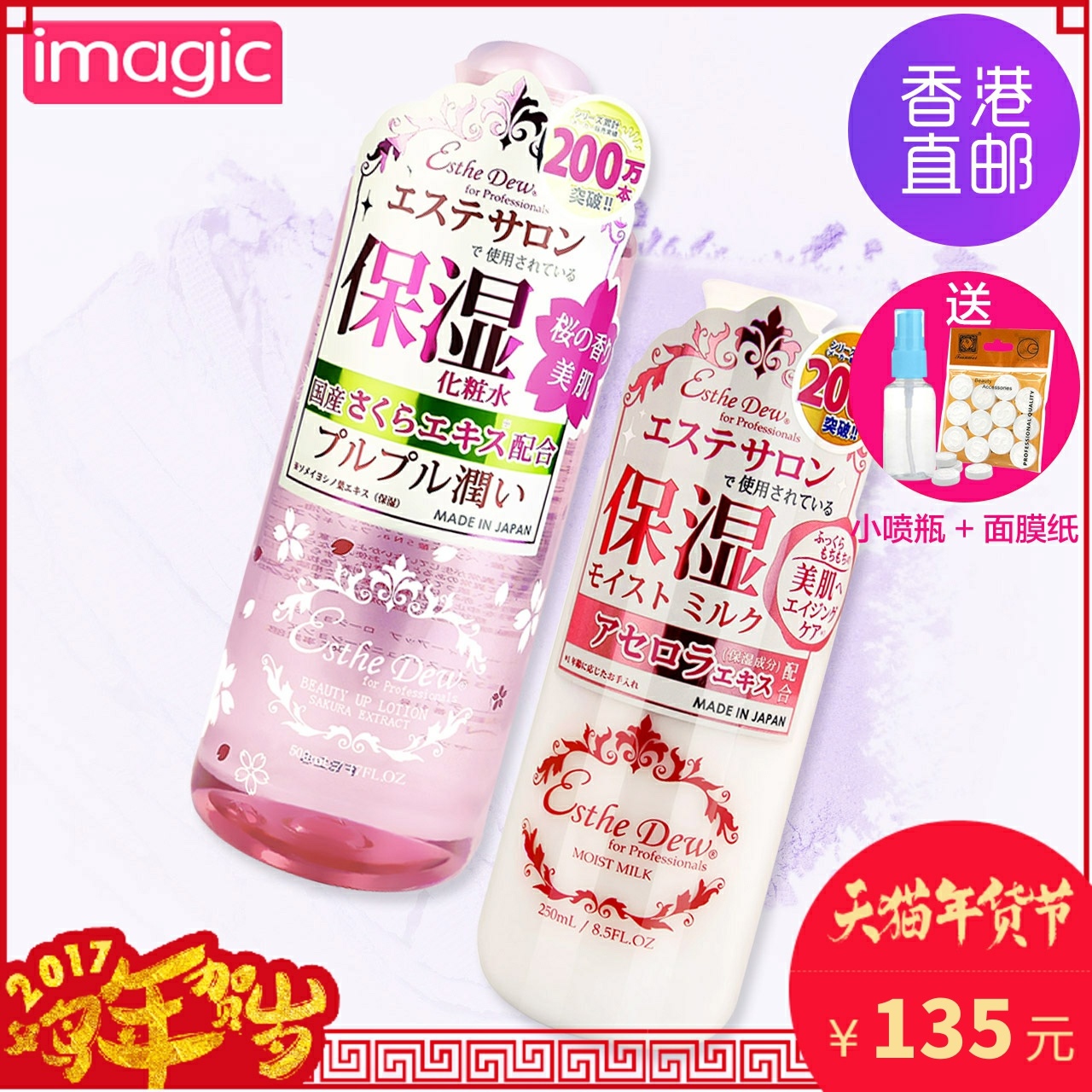 的热门产品新年Esthe Dew/伊诗露 樱花精华保湿爽肤化妆水 樱桃祛黄滋润乳液