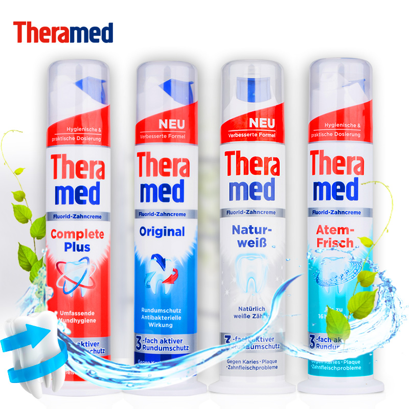 的热门产品德国进口汉高施华蔻theramed立式牙膏组合装正品四支装