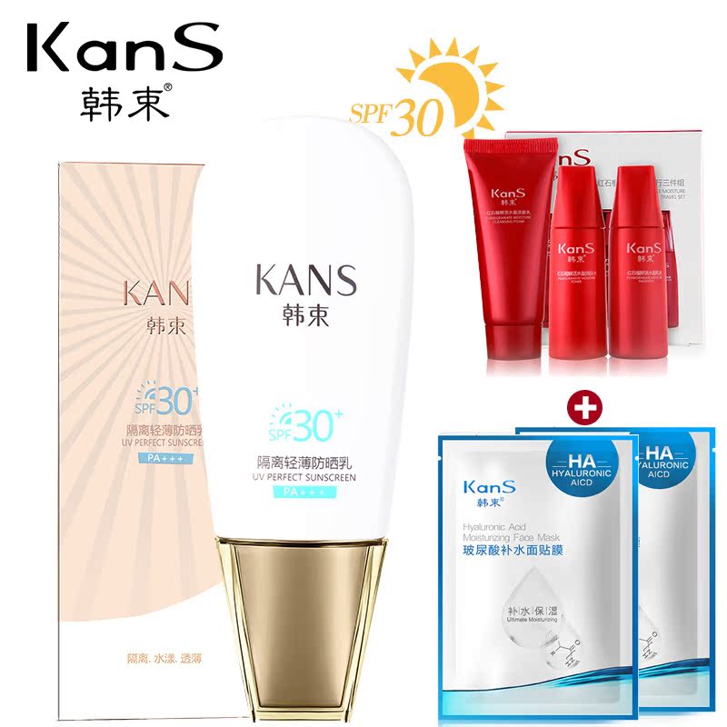 韩束防晒霜spf30 春夏男女面部全身补水隔离防晒乳套装海边防水