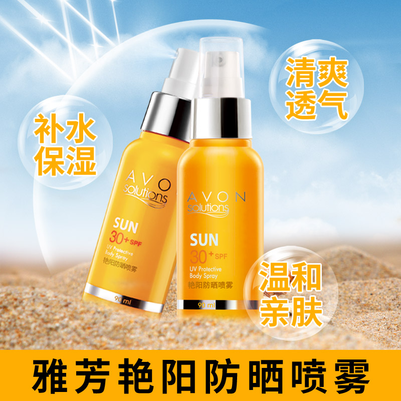雅芳肌肤管理艳阳防晒喷雾SPF30+防晒霜女男户外学生军训全身90ml