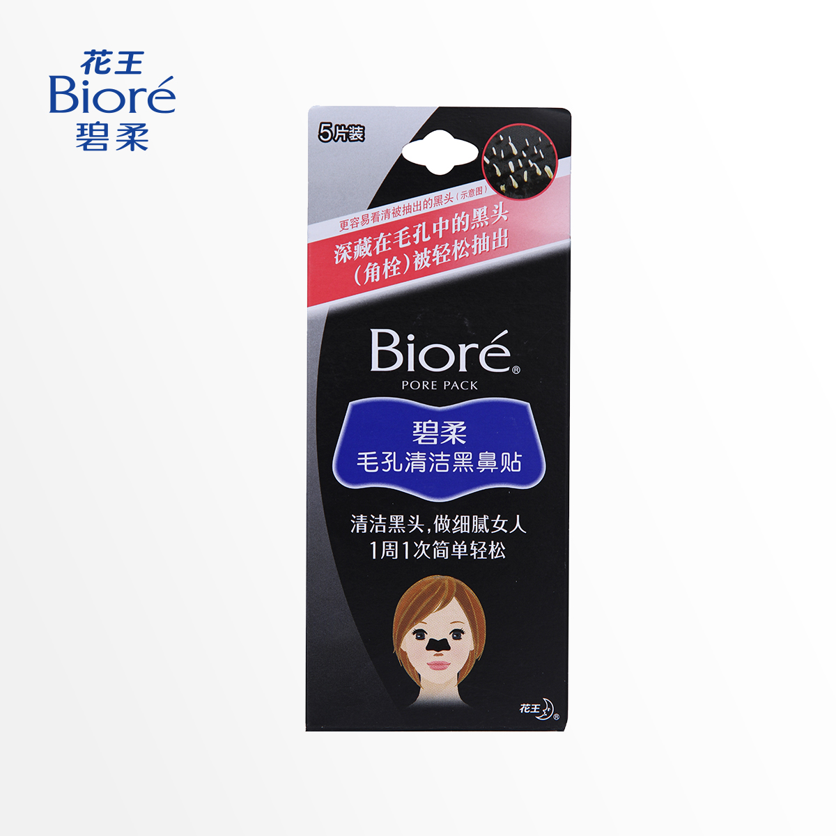 Biore/花王碧柔毛孔清洁黑鼻贴膜5片去黑头粉刺收缩女士撕拉式