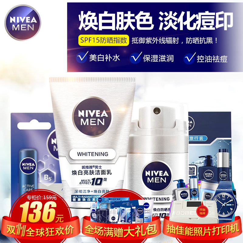 妮维雅男士化妆护肤品套装美白控油祛痘印洗面奶补水保湿爽肤水乳