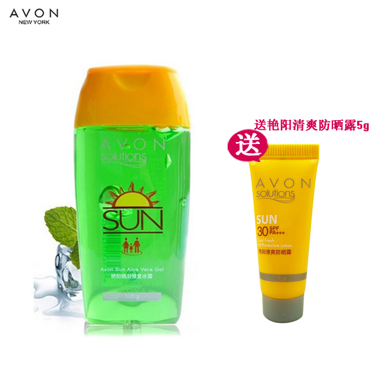 包邮雅芳艳阳晒后修复冰露100ml然芦荟精华送艳阳清爽防晒露5g