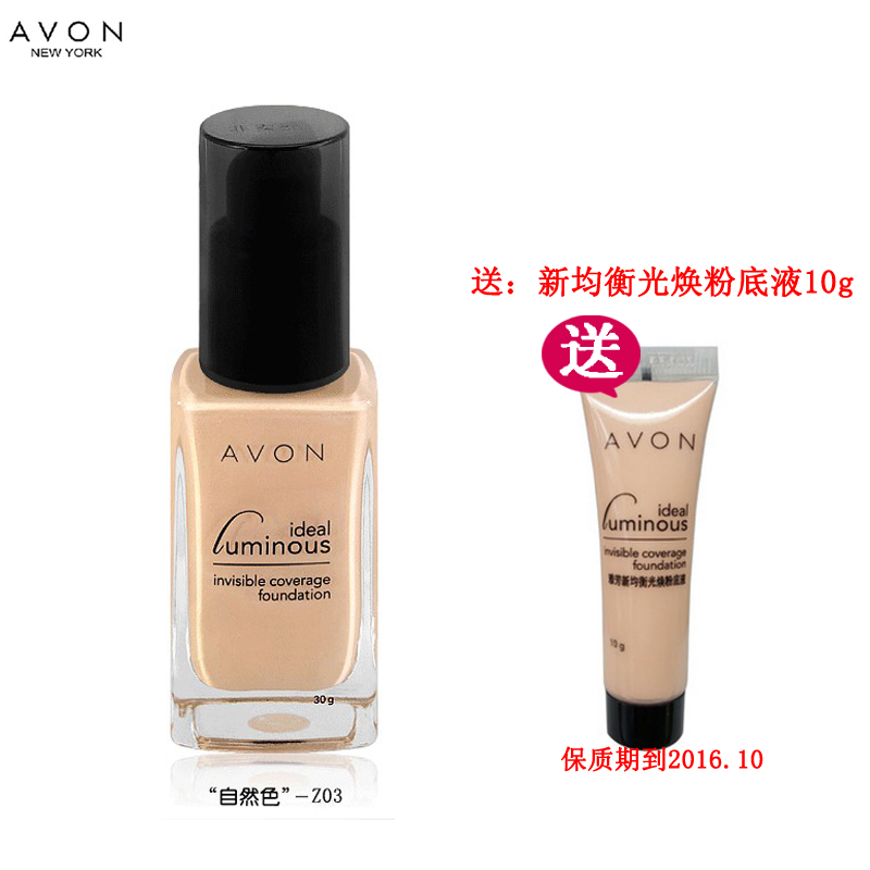 包邮avon/雅芳新均衡光焕粉底液30g 10g保湿淡妆遮瑕 送小样10克