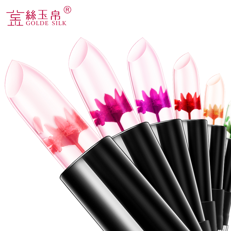 金丝玉帛幻彩花卉口红持久保湿滋润不掉色不脱妆温变唇膏彩妆包邮