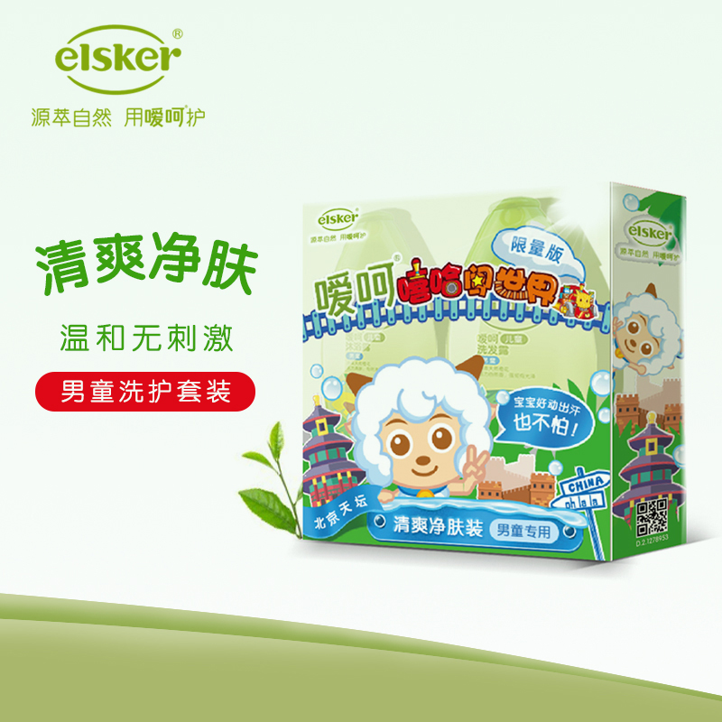 品牌:elsker/嗳呵 系列(型号):嗳呵男童洗护四件套 容量:240ml*1+240ml*1+120ml*1+60g*1 适用年龄:3岁 查看全文