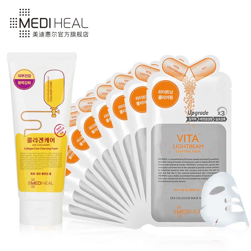 MEDIHEAL/美迪惠尔可莱丝维他命C面膜一盒+胶原蛋白洗面奶