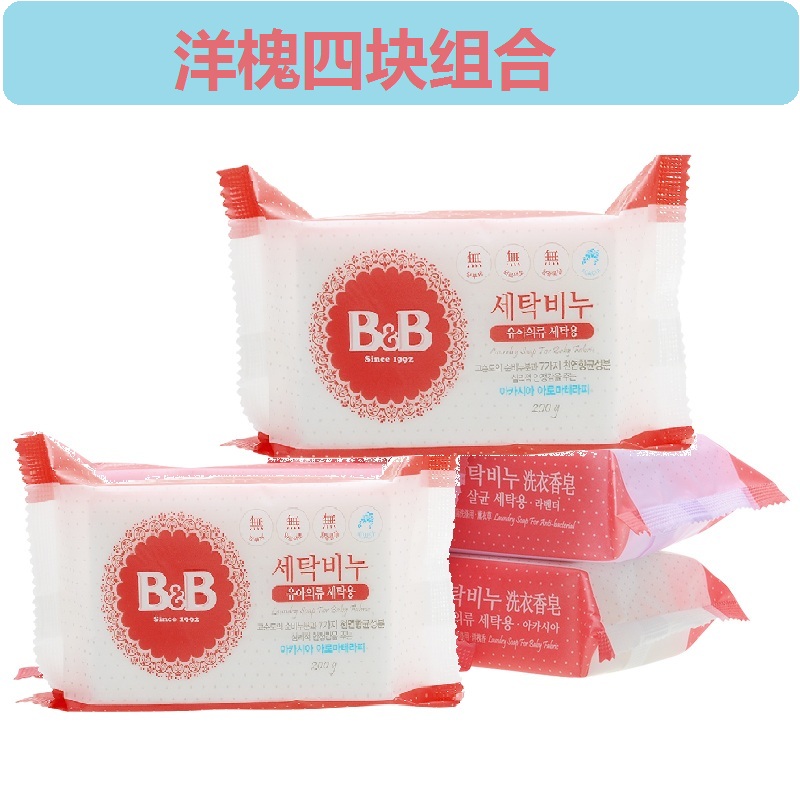 韩国B&B保宁婴儿尿布皂儿童洗衣皂200g*4块装宝宝洗衣皂洋槐香型
