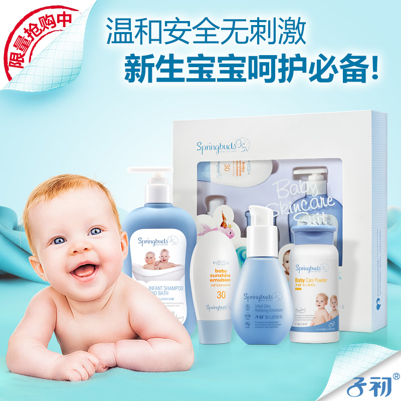 子初婴儿洗护用品儿童洗发水沐浴露 宝宝爽身粉护肤礼盒清爽套装