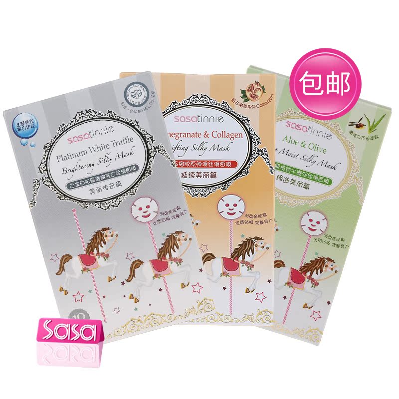 香港莎莎sasa Sasatinnie木马面膜套组3盒装芦荟+红石榴+白松露