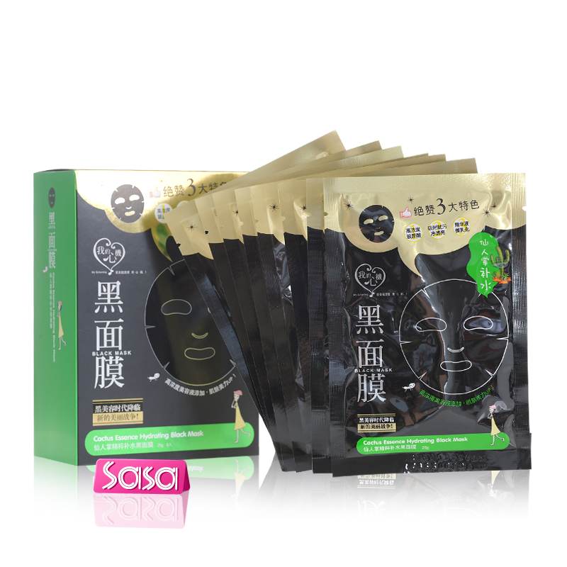 香港莎莎sasa 我的心机仙人掌精粹补水黑面膜8片