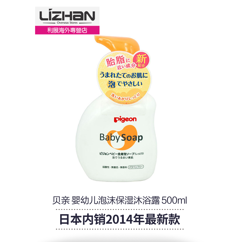 日本原装贝亲pigeon婴幼儿泡沫 滋润型 洗发沐浴露乳二合一500ml