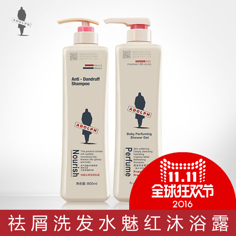 阿道夫洗发水沐浴露套装正品 去屑止痒洗发水+魔红诱惑沐浴乳液