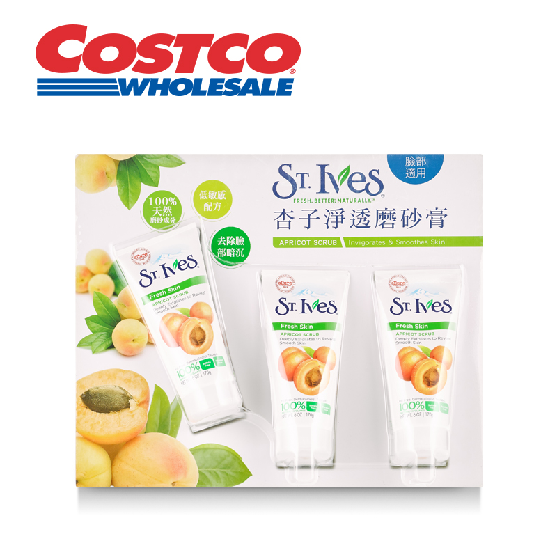 St.Ives/圣艾芙杏子净透磨砂膏170g*3入脸部去角质死皮清洁Costco