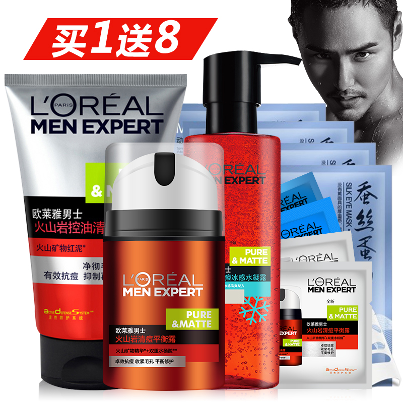 欧莱雅男士套装火山岩洗面奶爽肤水乳液霜控油祛痘收缩毛孔护肤品